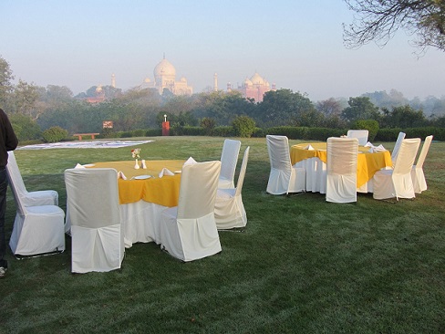 夕暮れ時に、タージマハルを見ながらティータイムも楽しめます。